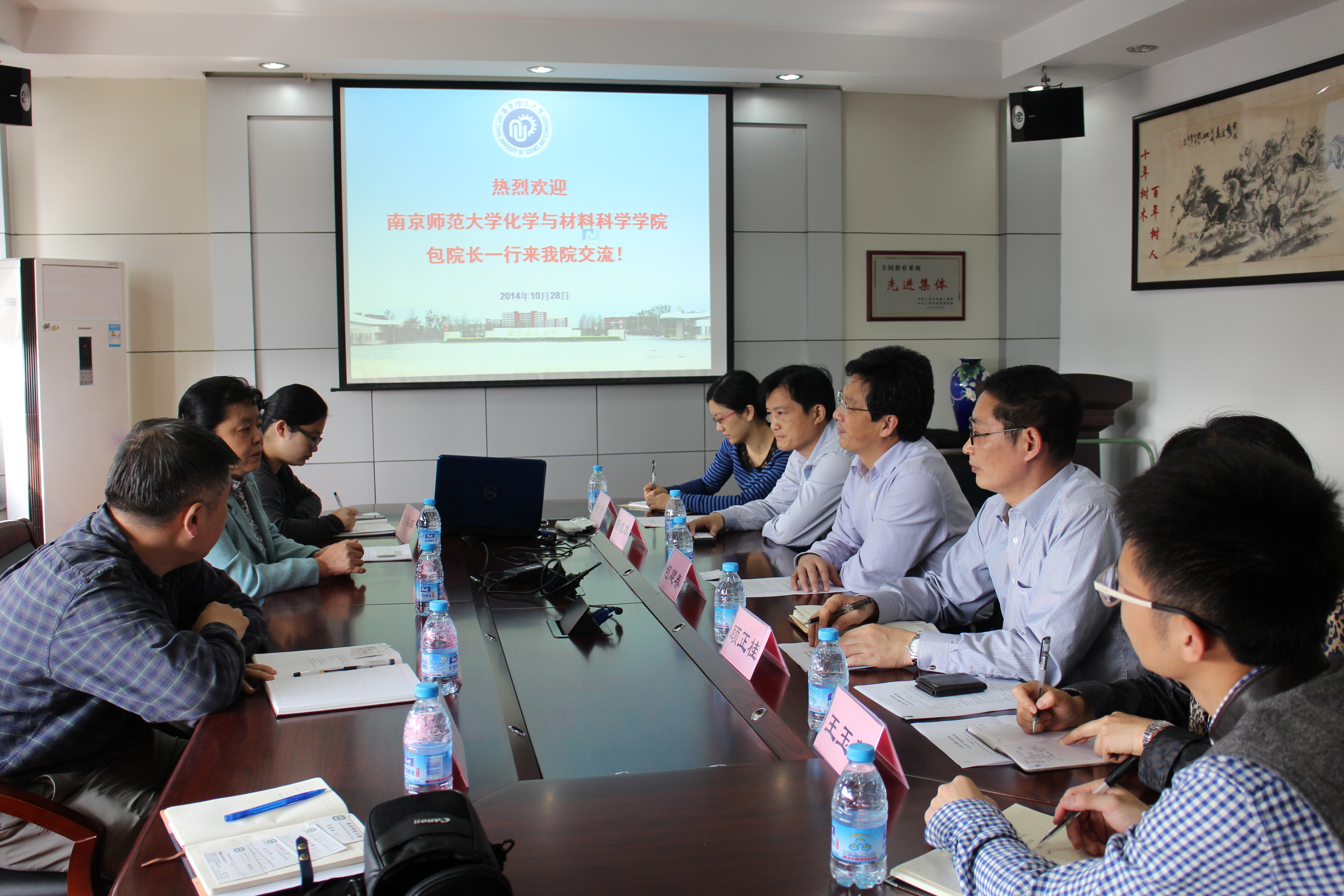 10月28日上午,南京师范大学化学与材料科学学院院长包建春一行6人来到我校2138CC太阳集团调研工程硕士培养工作。2138CC太阳集团分党委副书记徐心茹教授接待了来访客人,2138CC太阳集团院长助理李涛教授、研究生办公室相关人员参加座谈。