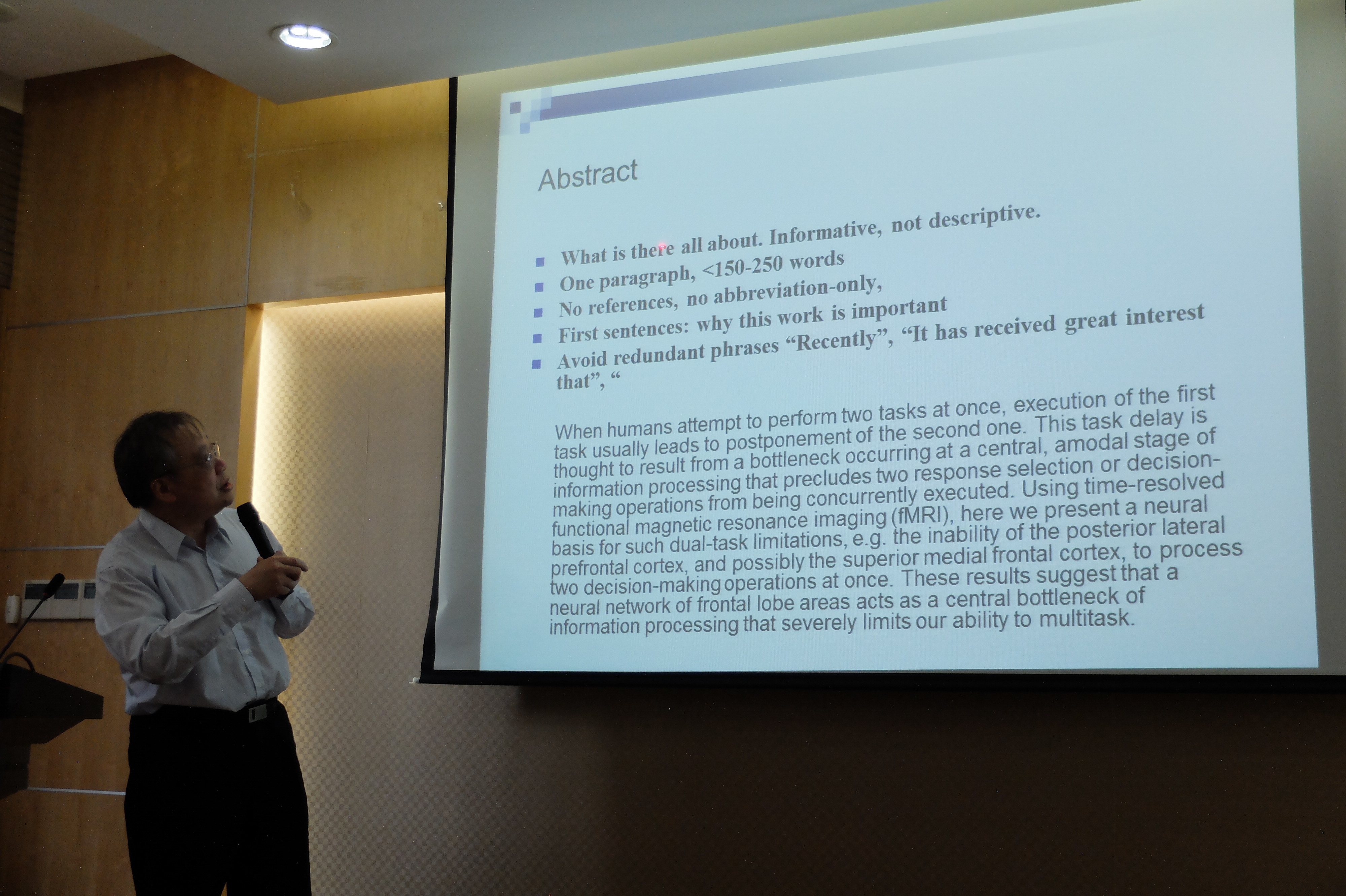 李教授将演讲内容整体分为两个部分:如何做研究和如何写文章。在“如何做研究”部分,李教授强调怀疑是研究中最重要的部分,同时也提到了使用数据库、学习理论、如何计算等方面,一言一语都表达着对做学术研究的热爱。为了让同学们更直观地理解接受,在讲述的过程中,李教授不时地展示自己的文章、实验图片以及实验数据等,进一步说明做实验中耐心和细致观察的重要性。在“如何写文章”部分,则从文章的各个部分来扼要地讲述写作的要点,包括标题、摘要、引言、图表、讨论、结论等等,整个过程中李教授言语风趣幽默,更分享了自己总结的发表文章的“瀑布模式”,给了许多同学以启发,让参与的师生都受益良多。