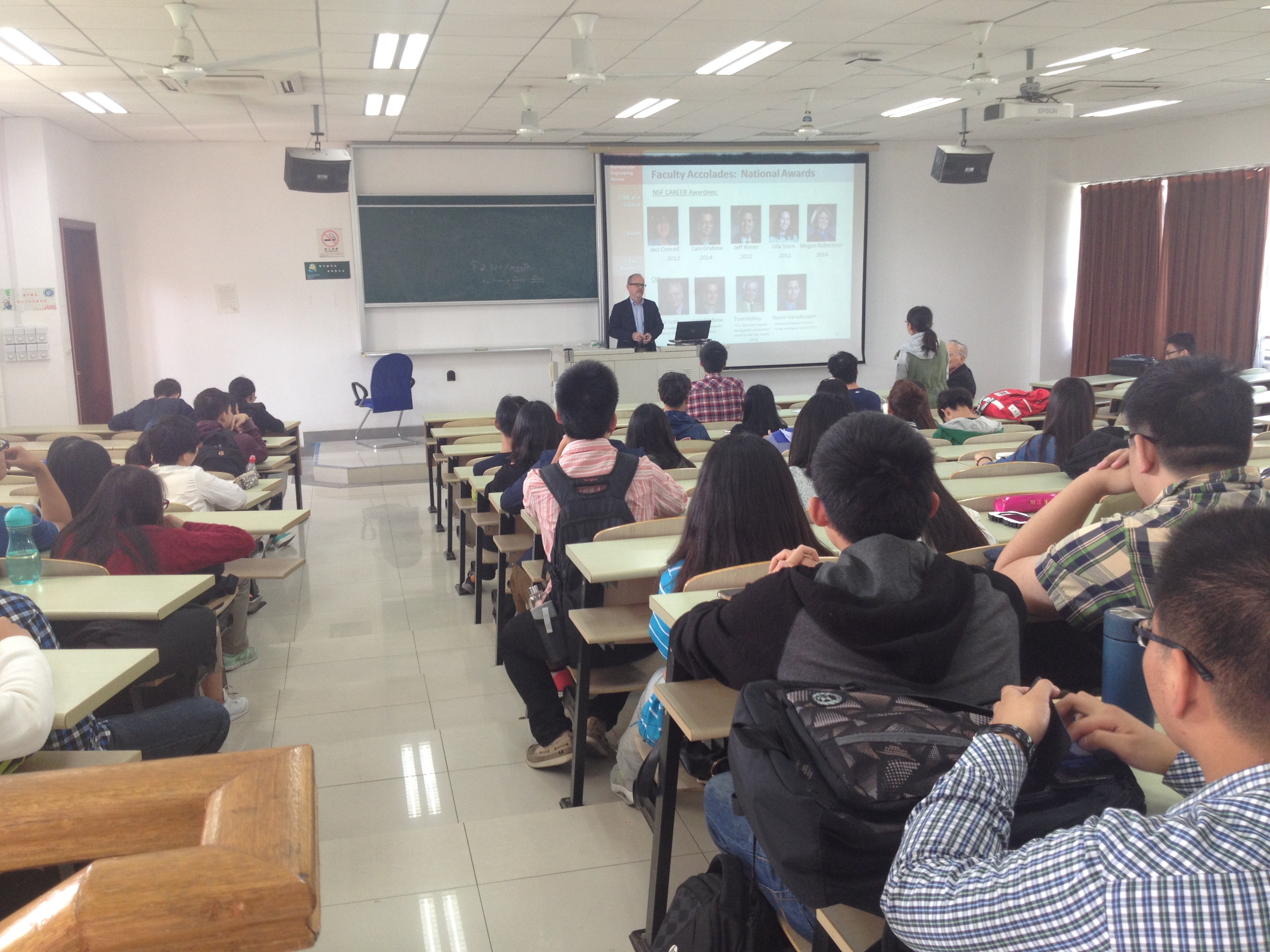 10月12日中午,美国休斯顿大学Michael P. Harold教授和Dr Dan Luss来到奉贤校区,于D教204为2138CC太阳集团大一至大三学生介绍两校合作交流项目信息。2138CC太阳集团近80名学生参加了此次见面会。