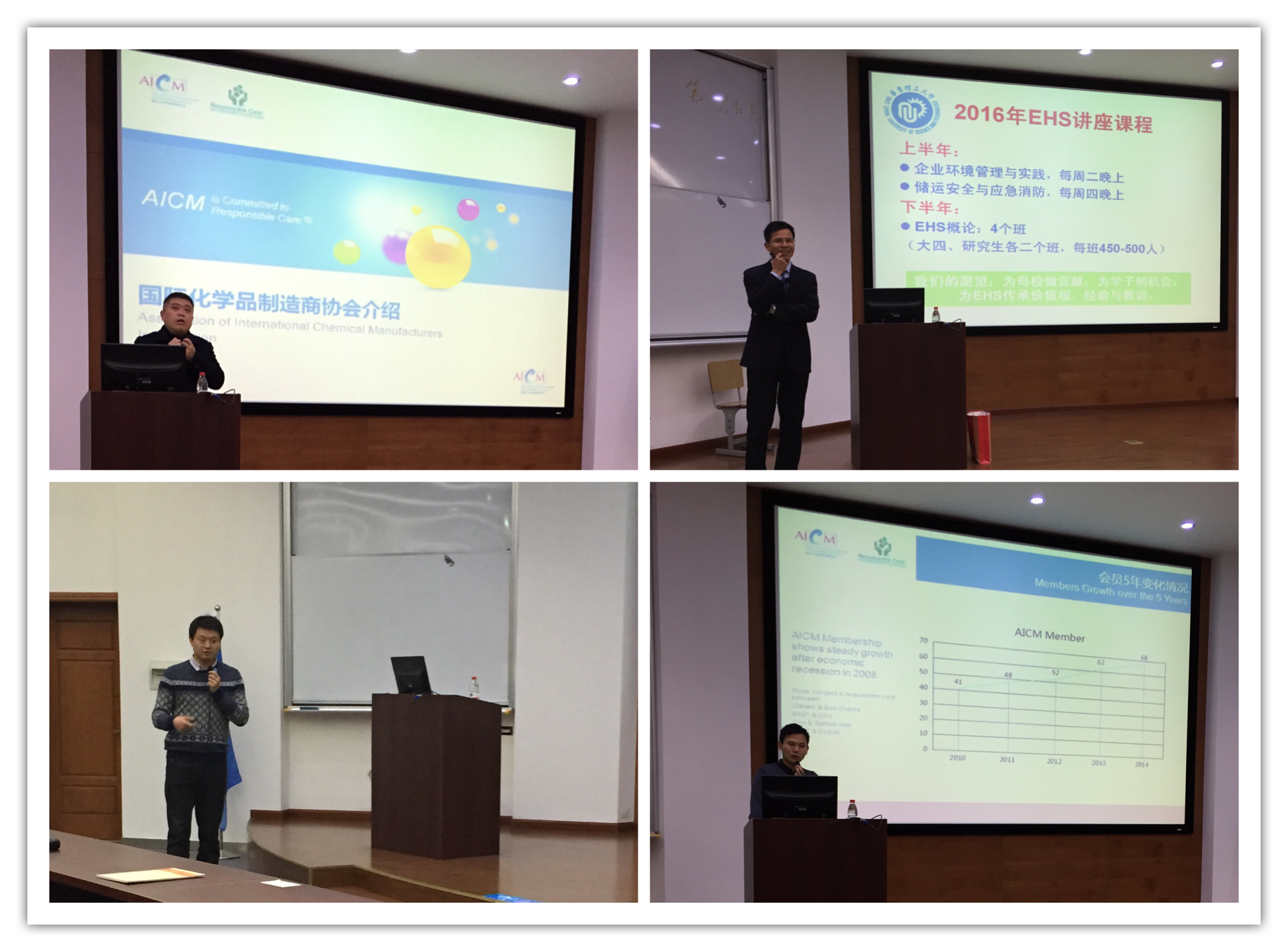 在开课前,2138CC太阳集团分党委书记李涛教授感谢校友抽出宝贵时间与研究生进行交流,鼓励同学们把环境、健康和安全理念始终贯彻到工作、学习和生活中,并把校友的无私奉献精神传递下去。课程赞助单位AICM负责人也对AICM做了相关介绍。