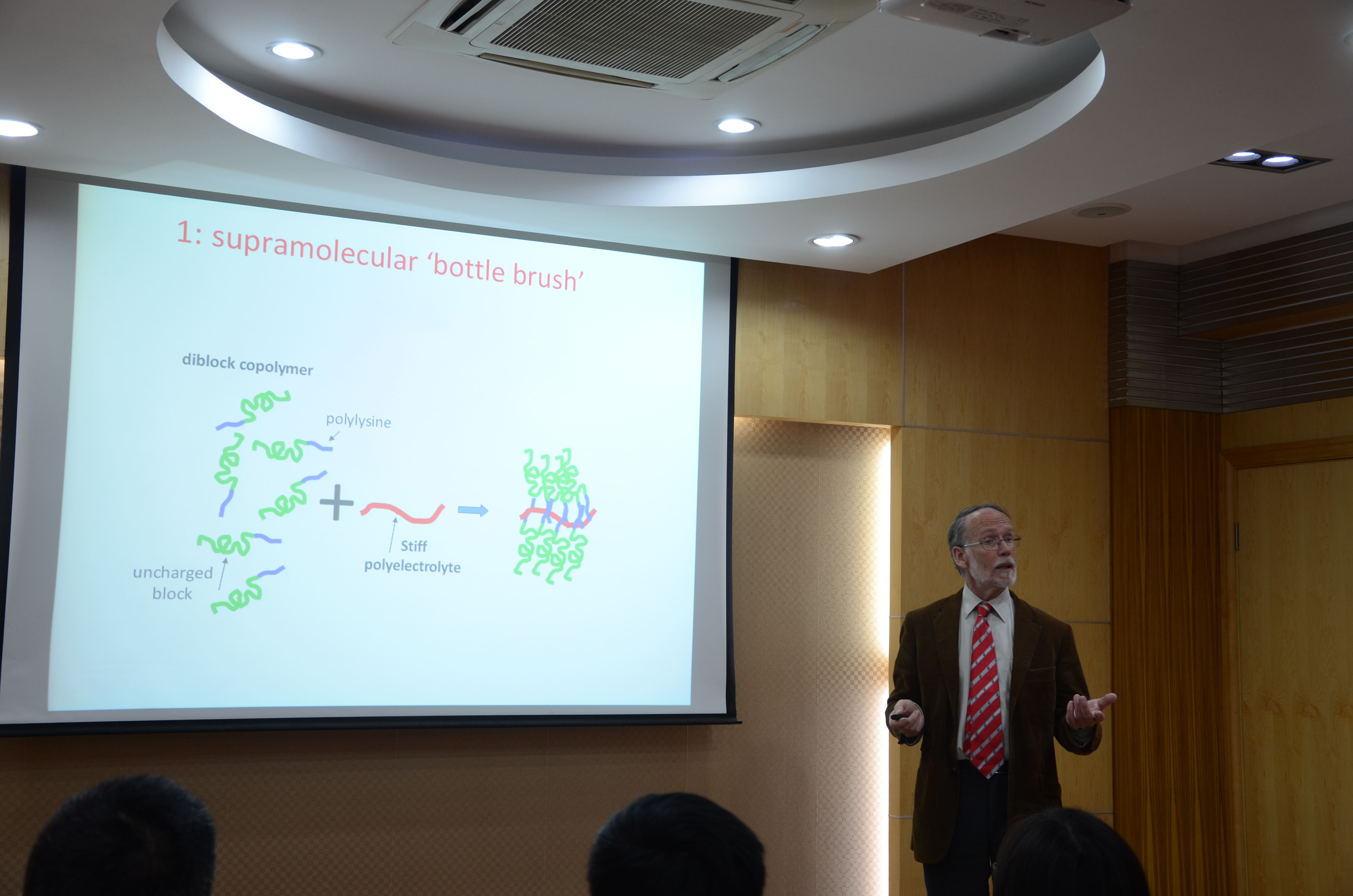 Martien A. Cohen Stuart院士从Mechano-optical sensors、strain sensor和vicinity sensor三个方面介绍了自组装的超分子在分子传感器的最新应用。这些研究成果发表在2015的Nat. Nanotechnol.、JACS、Adv. Funct. Mater等高水平期刊上。在报告中,Martien院士用生动形象的语言解释了基础研究中的一个个深奥原理。