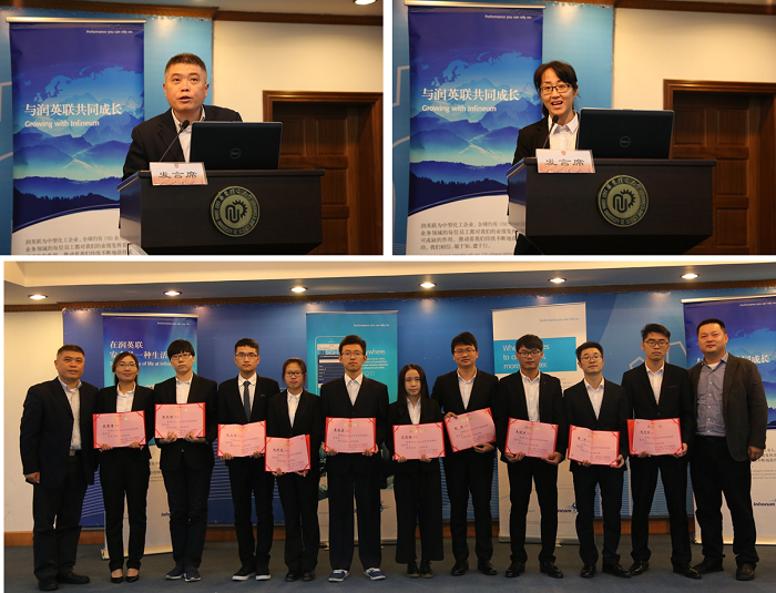 会议伊始,由李涛为本次颁奖仪式致辞,他代表学院表达了对润英联公司的衷心感谢和诚挚敬意,相信在和公司的共同努力下,能为学生搭建更加优越、广阔的平台,同时希望同学们也不负众望,争做厚基础、强实践、高素质、具有创新精神和国际视野的化工英才。随后高艺霞宣读了本年度润英联奖学金获奖名单,并邀请校企嘉宾李涛和高锋为获奖同学颁发证书、合影留念;获奖的研究生代表索倩倩和本科生代表陈熙理分别发表了激昂真挚的获奖感言,她们除了对公司的感谢之外,也表达了戒骄戒躁、刻苦钻研的决心,发挥模范带头作用,助力营造学院良好学风。