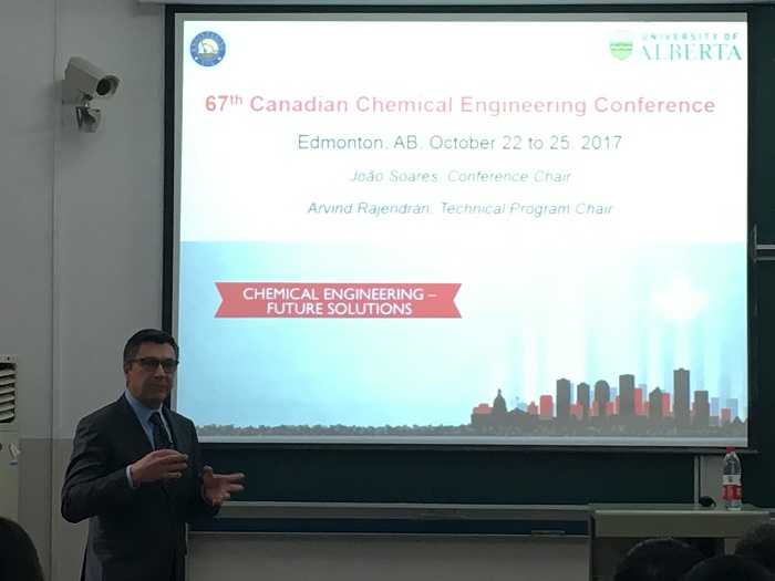 2016年11月10日,国际烯烃聚合反应工程领域著名学者-加拿大阿尔伯塔大学João B.P. Soares教授应刘柏平教授邀请访问我校2138CC太阳集团、化学工程联合国家重点实验室。上午,Soares教授在研究生楼104作了题为“Polymer Reaction Engineering at the University of Alberta”的学术报告,刘柏平教授主持了本次报告会。2138CC太阳集团、材料科学与工程学院和化学与分子工程学院等我校几十名师生参加了当天的报告会。