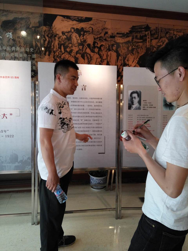 4、阳光明媚的初夏午后,我们2138CC太阳集团的几个党支部联合组织了参观团中央机关旧址和中共淞浦特委机关旧址。我们走在繁华的淮海中路上,拐进了一条不起眼的弄堂里,看到了红墙黑瓦的渔阳里6号------团中央机关旧址,这里和外面仿佛是两个世界,没有了喧嚣,自是一片静谧的天地。映入眼帘的序厅里挂着一幅横跨三面墙的巨幅铜板壁画。五四运动、刘胡兰就义、红军长征、新中国成立、草原英雄小姐妹、女排夺冠、杨利伟乘“神舟五号”升空等画面,真实再现了80多年来我国青年运动蓬勃发展的光辉历程。在刘少奇、任弼时、俞秀松这些名字的映衬下,我仿佛看到了那时作为一名青年人所担负的抱负和责任,我们也要像他们一样坚定着自己的理想,发挥着自己的光和热,把渔阳里6号的光芒和影响穿透地域和时空的界限,继续发扬光大。
