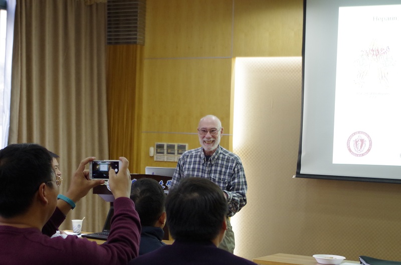 会议期间,Paul Dubin教授为我校师生作了题为“Non-chromatographic purification of a monoclonal antibody: complex coacervation with hyaluronic acid”的学术报告。在报告中,Dubin教授系统的介绍了聚电解质与蛋白质的作用机理以及聚电解质材料在生物质提取、分离、纯化等方面的应用,并就其课题组在上述的研究成果进行了分享。与会师生反响热烈,踊跃提问,Paul Dubin教授进行了详细解答。