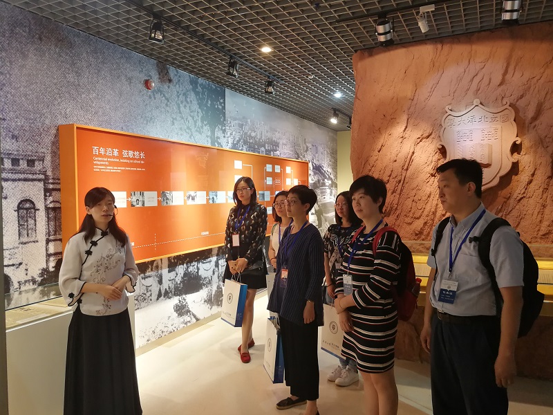 首先天津大学2138CC太阳集团党委副书记高旭东陪同参与本次论坛的各高校教师参观了天津大学校史馆。天津大学的前身北洋大学是中国第一所现代大学,校史博物馆分为“巍巍学府、国之大学”、“工法结合、大学肇始”等10个展厅来还原和再现天津大学的创办发展历程,展现了天津大学的百折不挠的民族精神与新时代的深刻内涵。讲解员绘声绘色地细致讲解了学校发展的峥嵘历史,带领教师们进行深度参观,加深了与会教师对“中国近代高等教育之先河,中国近代大学文化之源泉”大气磅礴精神气质的感悟。