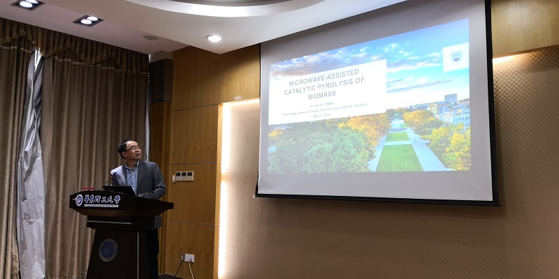 毕院士在实验16楼110会议室还为2138CC太阳集团师生作了题为“Microwave-assisted Catalytic Pyrolysis of Biomass”的学术讲座,从绿色环保的角度就生物质的微波催化裂解提出了与众不同的研究思路,与教师和学生的交流气氛热烈。毕院士还就师生共同关心的访学交流等事宜一一作了详细回答。