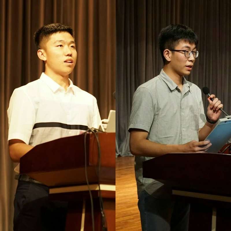 颁奖结束后,17级学生代表段旭东和新生代表马上轩相继发言。段旭东结合一年的大学生活,告诫学弟学妹们在大学不要放松自我,秉承“学在华理”传统,开阔眼界,成为更好的自己。作为学校励志明德班一员的马上轩,带着刚刚进校的懵懂和一往无前的锐气,倡导所有新生要有信心,有勇气,有梦想,有行动,不仅做海阔天空的追梦者,更要做脚踏实地的圆梦人。