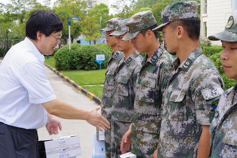 天气炎热,训练辛苦,领导为教官和指导员们发放了慰问品。军训教官和指导员也一致表示,感谢校领导的支持和关心,将不辱使命,圆满完成新生军训的工作。