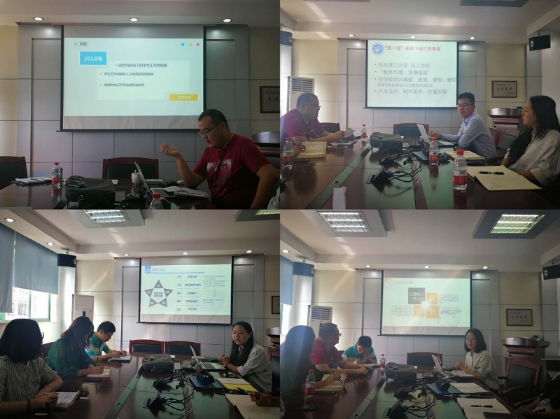 随后,辅导员依次进行研讨汇报。王梦雪总结了上学年团委工作,对本学期就业工作做出规划,明确了校友工作对于学生归属感以及未来发展的重大意义;刘宗慧围绕忧患意识、安全宣传、家校协作三个方面对接下来的安全稳定初步规划;强莉提出了一流学科建设背景下推动太阳集团法治化的工作思考,促进太阳集团规范化、制度化建设;姜贤武强调了“文化育人,志愿育人”理念,打造有华理化工特色的品牌京剧,建设有温度有责任的华理化工志愿者团队;阿曼围绕少数民族学生学风建设的重要性进行发言,未来将进一步挖掘少数民族学生优秀典型;研究生辅导员于靖和庞祎晔汇报了研究生基层党建工作,并提出贯通研究生和本科生基沟通交流渠道,加强两校区联动、传承的工作理念。