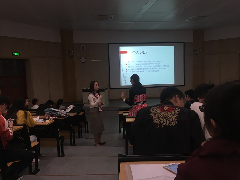 瞿红经理则从华谊新材料的发展出发,通过行业发展、杰出人物、求职中关注的问题等方面出发,向2138CC太阳集团师生分享了从企业角度对于应届生求职能力、社会上行业认知、个人未来发展通道等的相关信息,强调应届生在求职前一定要衡量自身能力,综合考量,迈好求职第一步。校友张雯斐采用现场提问的方式,通过如何规划研究生生活、求职面试技巧、职业发展规划等问题为学弟学妹们分享了自己在大学从本科、研究生到博士在不同阶段对于自身能路的培养,同时将自己求职以及工作后对于面试技巧以及在大行业背景下职业发展规划应注意的事情进行了分享。
