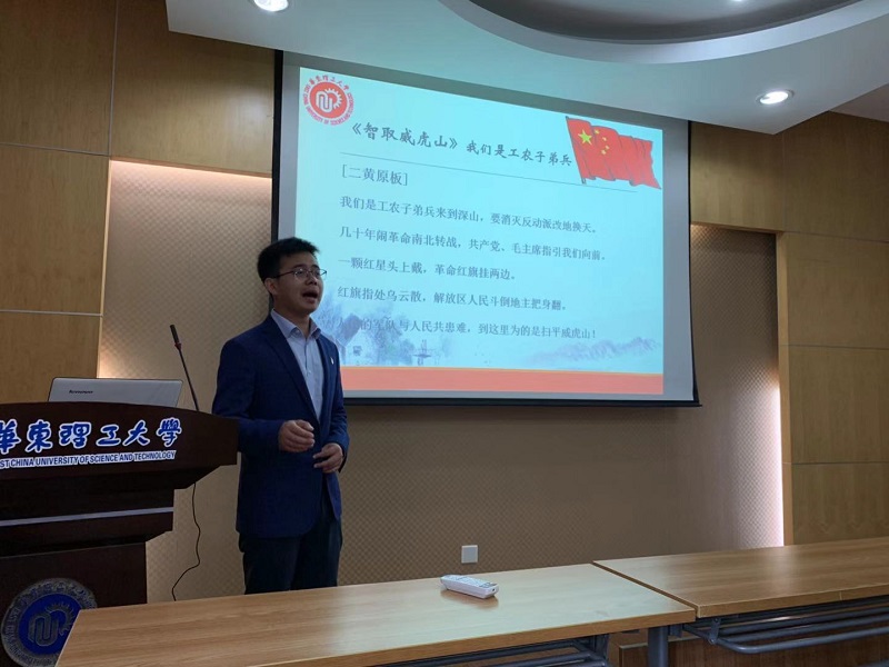 最后互动环节,姜贤武邀请琴师刘彪助兴伴奏,现场表演了京剧《捉放曹》选段,并带领参会的老师一起学唱现代京剧《智取威虎山》我们是工农子弟兵,重温红色经典,现场体验京剧。研究生辅导员于靖也演唱了《海港》选段。
