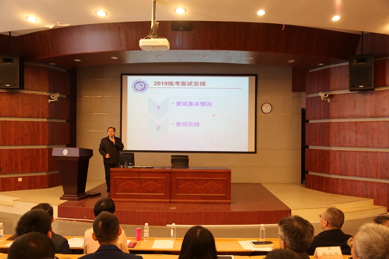 刘殿华副院长介绍了2019年硕士研究生复试的基本情况:包括复试的人数,日程安排,专家安排及面试注意事项。刘院长强调面试成员应严格执行招生保密制度和回避制度,保证公平公正,为学院选拔优秀学生。