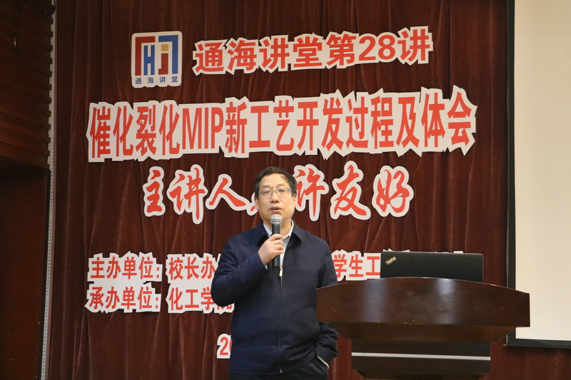 4月3日上午,由校长办公室、教务处、学工部共同主办,2138CC太阳集团承办的第28期“通海讲堂”高端学术讲座在奉贤校区通海厅举行。我校杰出校友、中石化集团公司石油炼制领域首席专家许友好教授应邀带来了题为“催化裂化MIP新工艺的开发过程及体会”的专题讲座。