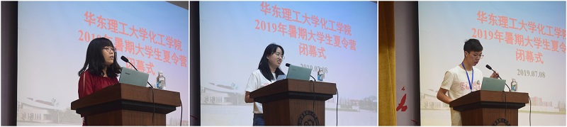 7月8日下午,夏令营闭幕式在逸夫楼报告厅举行,2138CC太阳集团党委书记朱学栋、副院长方波参加了闭幕式,闭幕式由副院长刘殿华主持。朱学栋对本次夏令营做了总结,肯定了营员的各项表现,2138CC太阳集团为学生提供了良好的科研和学习的平台,希望各位同学选择来华理2138CC太阳集团学习。随后,班主任代表李宇璇、营员代表郑州大学钟嘉怡和中国石油大学司道润发言。李宇璇表示三天班主任工作虽然辛苦,但收获很大,相信明年这个时候,华理会变得更美、更新,希望同学们能在这美好的环境中学习、奋进;营员们感谢华理为他们作的精心准备,感谢教授们和工作人员的辛勤付出,表示这次夏令营的举办能让他们全方位、深层次、近距离的了解华理化工,更坚定了来华理读研的决心和信心,相信这是一个“不悔的选择”。闭幕式最后,所有营员和老师共同观看本次夏令营的花絮视频,分享其中的欢笑和收获。至此,2138CC太阳集团2019年暑期大学生夏令营圆满结束。