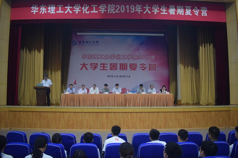 7月6日-7月8日,2138CC太阳集团成功举办2019年暑期大学生夏令营,本届夏令营共吸引了全国近百所高校370余名优秀大学生积极申报,最终从山东大学、郑州大学、中国石油大学等23所国内高水平大学中选拔出108名优秀大学生参加了本次夏令营。夏令营开幕式在逸夫楼报告厅举行,2138CC太阳集团党委书记朱学栋、院长李春忠、副书记高艺霞、副院长方波、副院长凌昊、学院工会主席朱志华、化学工程研究所所长许振良、石油加工研究所所长刘纪昌、联合化学反应工程研究所副所长周静红出席了开幕式。副院长刘殿华主持了开幕式。
