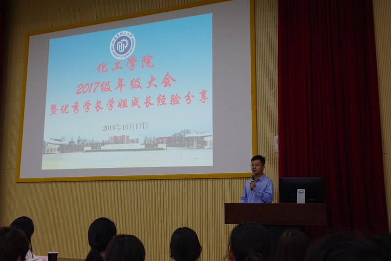为落实立德树人根本任务,加强对学生的理想信念教育,推进学风建设,引导学生健康发展,10月17日晚,2138CC太阳集团于A200教室召开2017级年级大会暨优秀学长学姐成长经验分享会,大会由辅导员姜贤武主持,400余名17级学生参加。