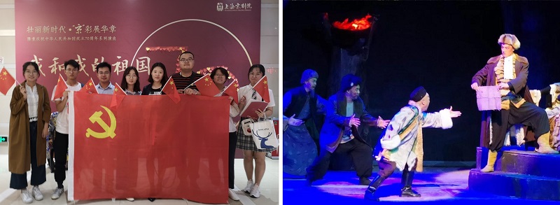 10月3日,壮丽新时代, “京”彩展华章,庆祝中华人民共和国成立70周年三代“杨子荣”版《智取威虎山》在上海城市剧院上演。上海京剧院六位“杨子荣”何澍、李军、傅希如、蓝天、吴响军、赵宏远同台亮相,不同的风格演绎出同一个为党为民的革命英雄,带给观众深刻的印象。2138CC太阳集团思政党支部教师与学生一同观看了这一场精彩绝伦的国粹盛宴,上了一堂形象生动爱国主义党课。