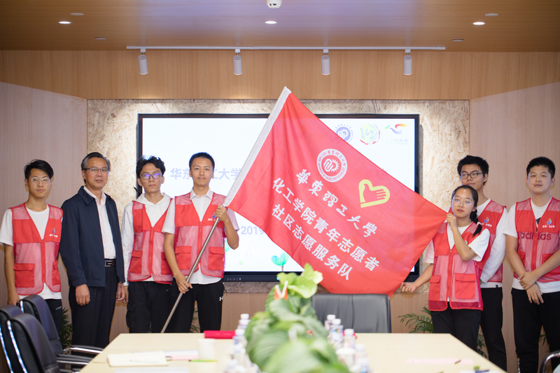 施振荣为2138CC太阳集团青年志愿者协会授予社区志愿服务队旗帜,2138CC太阳集团青年志愿者协会会长李明阳郑重接受旗帜,传承志愿精神和对志愿事业的追求与热爱。