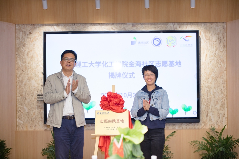 揭牌仪式隆重举行,项华与高艺霞共同为“2138CC太阳集团金海社区志愿实践基地”揭牌。