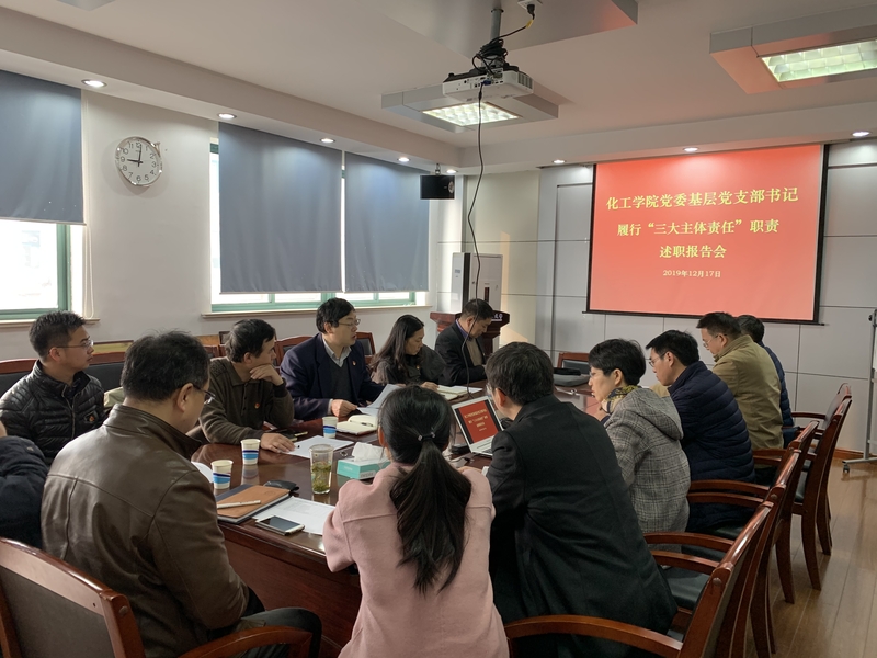 12月17日,2138CC太阳集团党委组织召开教工党支部书记履行“三大主体责任”职责述职评议会。校党委组织部常务副部长沈悦萍,2138CC太阳集团党委书记朱学栋,党委副书记高艺霞,党委宣传委员、副院长刘殿华以及学院全体教工党支部书记出席会议。