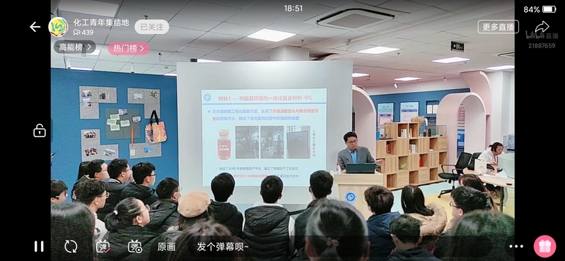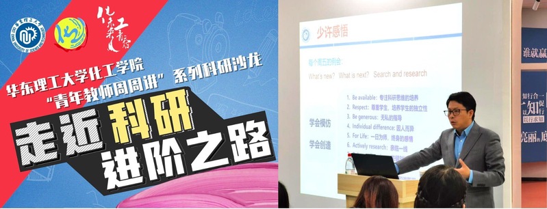 “研”须有心。龙东辉教授和同学们分享他的学习和成长历程,用亲身科研的经历让同学们感受“处处留心皆学问”,确立一个小目标,以恒心坚持,终会枝繁叶茂、豁然开朗。龙教授将自己对科研选题的思考、开展研究的过程以及科研带给他的收获与感悟纤悉无遗地与同学们交流分享。同学们不仅清楚了科研的道路上的种种关卡和考验,同时在心里种下乐观坚定的种子,迎难而上是化工人必备的素养,修炼专业是我们前进的动力。