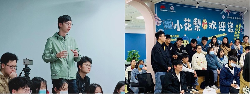 龙东辉教授结合多年在科研育人一线的经历和感悟,为同学们带来了一场别开生面的科研盛宴。龙教授从事于航天热防护材料的研究,并担任华理-航天八院热防护技术联合实验室主任、特种高分子及相关技术教育部国防重点实验室副主任,是同学们最为喜爱的青年教师之一。小花梨新媒体工作室轻松的交流氛围、优秀青年教师的悉心传授、同学们求知的专注目光,一场令人印象深刻的研讨拉开序幕……