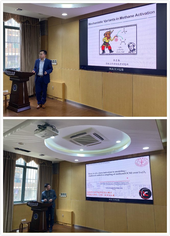 4月26日,2138CC太阳集团邀请吉林大学李吉来教授和上海科技大学杨永研究员举办学术前沿讲座。在“碳达峰、碳中和”战略目标下,研究生如何在科研学习中紧密围绕低碳烃资源的绿色催化转化与高效利用国家重大战略需求,两位老师给出了甲烷转化领域学科最前沿解读,并鼓励青年教师和研究生抢抓机遇,敢于创新,勇于开拓新方向,做出更多从0到1的原创性成果。