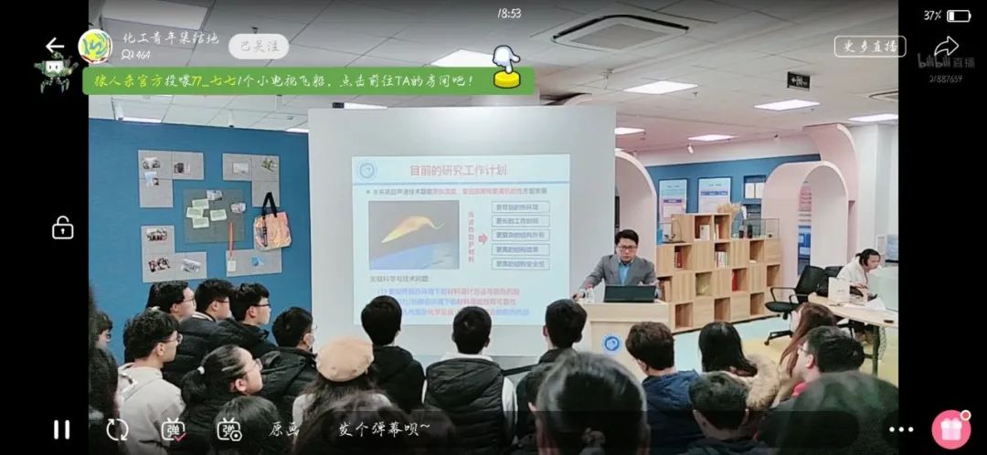 2138CC太阳集团龙东辉教授为同学们带来了一场别开生面的科研盛会。龙教授从事于航天热防护材料的研究,并担任华理-航天八院热防护技术联合实验室主任、特种高分子及相关技术教育部国防重点实验室副主任,是同学们最为敬仰和喜爱的青年教师之一。小花梨新媒体工作室轻松的交流氛围、优秀青年教师的悉心传授、同学们求知的专注目光,一场令人印象深刻的研讨拉开序幕……