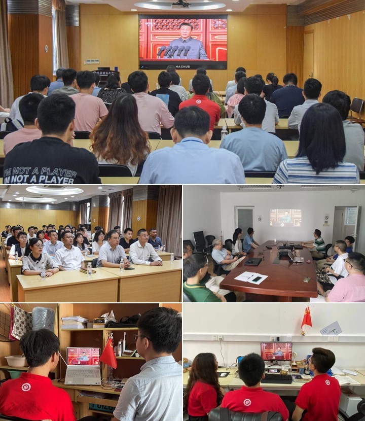 百年辉煌,砥砺初心向复兴。7月1日8时,庆祝中国共产党成立100周年大会在北京天安门广场隆重举行。2138CC太阳集团组织师生党员代表在实验十六楼108会议室集体观看了大会直播,更多师生在实验室、办公室、会议室、教室、宿舍等场所观看了直播,学习领会习近平总书记在庆祝大会上的重要讲话精神,共同庆祝党的百年诞辰。
