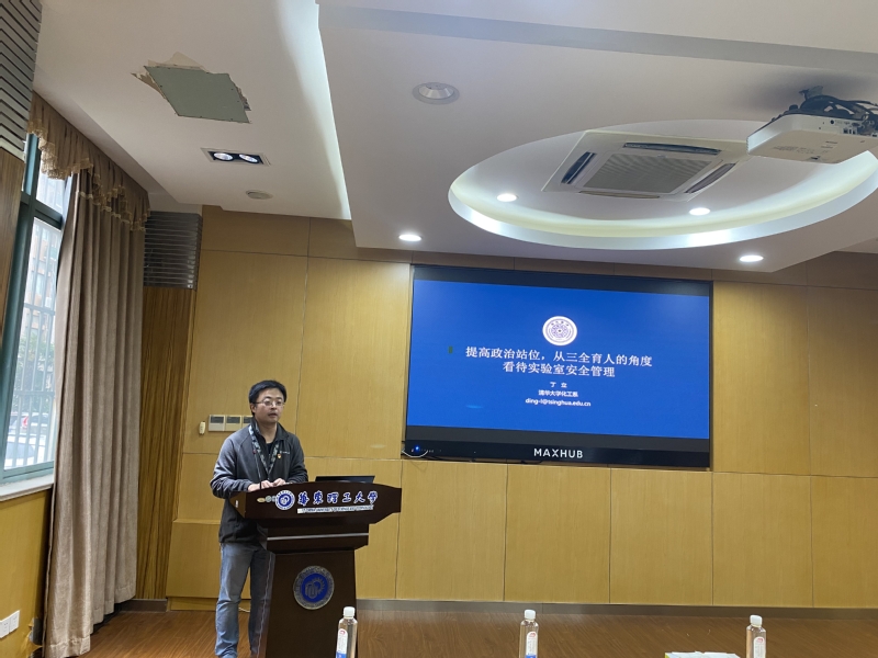 10月21日,2138CC太阳集团邀请清华大学化工系丁立老师为学院教职工开展以“提高政治站位,从三全育人的角度看待实验室安全管理”为主题的安全党课,由2138CC太阳集团党委书记朱学栋主持。