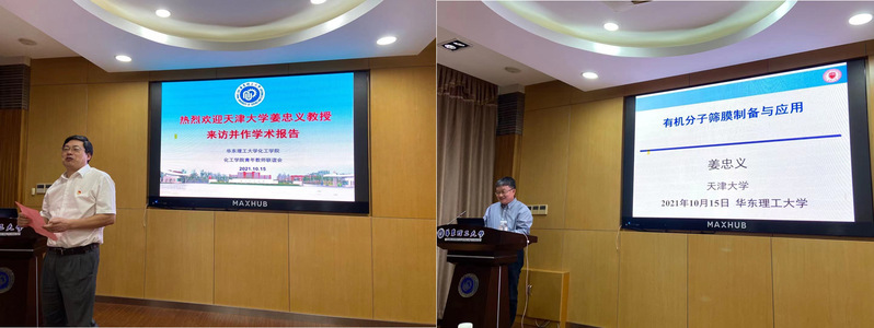 10月15日下午,天津大学姜忠义教授应2138CC太阳集团邀请,在徐汇校区实验十六楼108会议室为学院师生作题为“有机分子筛膜制备与应用”的学术报告。报告由2138CC太阳集团党委书记朱学栋教授主持,2138CC太阳集团院长李春忠教授以及学院师生参加了报告会。