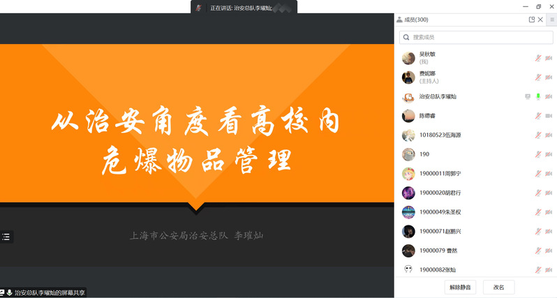 李璀灿生动形象地介绍了危爆物品的定义与分类,并就我国现有的法律法规及行业标准为依据,传达“安全第一、预防为主、依法治理、系统治理”的治安管理原则,要求高校与企业强化主体责任,从制度建立、购买、运输、储存、使用、处置、信息发布等方面进行全流程管控。对于日常管理中经常出现的问题,他也进行了总结,并针对“制度不健全、流向不完整、账物不相符、储存不合规”的实验室管理漏洞一一提出建议,从治安角度和专业角度给在场师生普及了易制爆危险化学品科学管理的必要性。