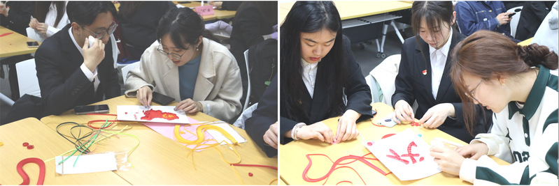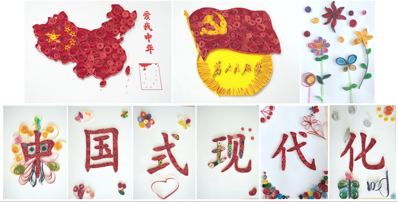 入党宣誓仪式结束后,全体党员和入党积极分子用衍纸点亮入党初心。他们将五颜六色的衍纸条进行卷曲、弯曲和捏压,亲手制作出“中国共产党党徽”“中国地图”图案及“中国式现代化”字样,并送上对党和国家、对华理和2138CC太阳集团的美好祝福。