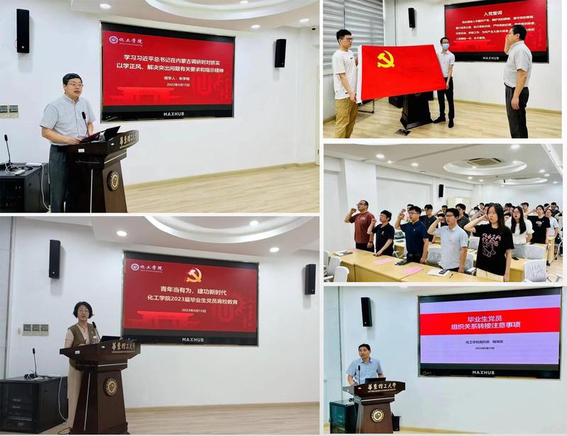 接受一次党性教育、再悟初心。6月15日上午,2138CC太阳集团毕业生党员齐聚一堂,以集体宣誓的方式,重温入党誓词,接受了一次深刻的党性教育。面对鲜红的党旗,2138CC太阳集团党委书记朱学栋带领全体党员,举起右手,紧握拳头,在党旗下宣誓,重温入党时的神圣和庄严,再悟初心。会上,朱学栋领学《习近平总书记在内蒙古调研时对抓实以学正风、解决突出问题的有关要求和指示精神》,从“大兴务实之风”“弘扬清廉之风”“养成俭朴之风”三个方面勉励全体毕业生党员要时刻牢记党员身份,在未来的学习与工作中既仰望星空,又脚踏实地,做一个求真、求是、求实的新时代好青年。学院党委副书记高艺霞围绕“科技报国、人才强国”寄语毕业生党员:牢记入党初心、常怀感恩之心、砥砺报国之志,用自己的学识和技术,解决国家发展中的“卡脖子”技术难题,以实际行动践行自己的初心使命。学院组织员梅海东就毕业生党员组织关系转接工作流程和注意事项进行了详细讲解,希望大家将及时做好组织关系转接作为增强党性观念的重要一环。