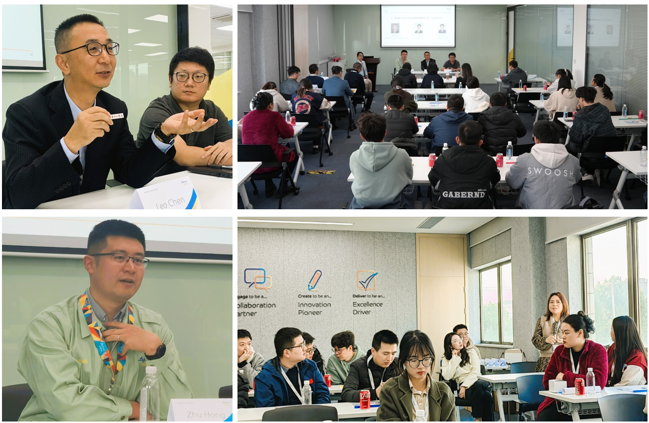 抵达公司后,企业相关部门的负责人首先为师生一行带来主题分享。金漪雯对2138CC太阳集团师生一行的到来表示热烈欢迎,并对公司的发展历程、全球影响力、业务布局及主营业务等作了简要介绍。崔刚从工作服的故事展开,阐述了公司的文化和价值观。校友代表、特创工程塑料(上海)有限公司项目与工程经理张阔介绍了上海工厂的发展历程,并介绍了公司产品从研发到生产的绿色闭环产业链。高艺霞对SABIC的精心组织表示衷心感谢,并期待与公司开展更深层次的交流合作,共同探索知行合一的学生培养模式。