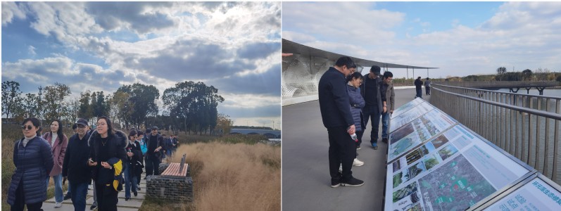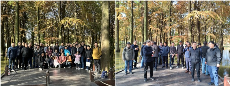 秋游第一站,大家来到了上海市青浦区金泽镇的青西郊野公园,它是上海唯一一个以湿地为特色的郊野公园。园内物种资源丰富,“湖、滩、荡、岛”纵横交错,湿地、湖泊、河流、森林形成多样化的生态系统。走进生态保育功能区“水上森林”,秋日的水杉、池杉、落羽杉枝头尽染,风景如画,不禁引人驻足欣赏。
