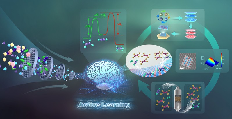石脑油裂解碳二和碳三馏分中少量的炔烃选择性加氢是制备聚合级乙烯和丙烯的关键。非贵金属Ni因其具有未填充的d轨道电子而表现出优异的氢活化能力,然而该类催化剂选择性往往较低。研究团队先前的研究结果表明,设计和制备原子级分布的金属活性位点、通过引入第二金属精确调控其上关键物种的吸附构型能实现对目标产物选择性的调控(Angew. Chem. Int. Ed. 2020, 59, 11647; Angew. Chem. Int. Ed. 2022, 61, e202215225; Nat. Commun. 2022, 13, 5534)。为寻找最优的第二金属,传统研究模式主要依赖实验试错方法,效率较低。快速发展的机器学习等数据科学技术为催化剂设计带来新的契机。基于机器学习、理论计算和实验研究的有机结合,有望实现催化剂的高效筛选,突破传统试错法的弊端。