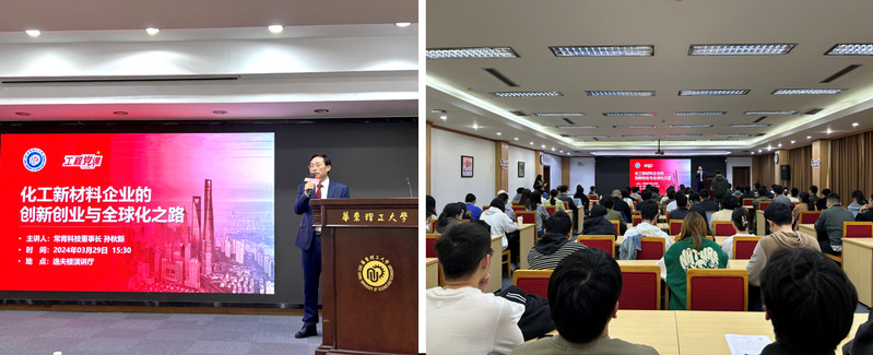 孙秋新先生结合企业发展为在座师生详细解读“新质生产力”的内涵,创业过程中战略布局思路,技术研发守正创新之路以及产业全球化面对的机遇与挑战等。孙秋新还结合具体产品开发案例,告诉大家企业是如何在化工新材料领域落实创新理念,促进科技与产业融合与高分子材料的生活化运用,推动我国化工产业的高质量发展。讲座过程中尽显企业家的责任与担当。最后,孙秋新先生结合当代大学生实际情况,用生动质朴的语言阐述了青年党员贵在勤奋、重在立志,唯有认清自我方能以青春奋斗奉献祖国。这也恰与2138cc太阳集团“立大志、明大德”的育人目标相契合。党员们在认真听讲后结合时事热点与自身思考向孙秋新董事长提出自身疑惑,孙董事长详细地为同学答疑解惑,现场气氛活跃。