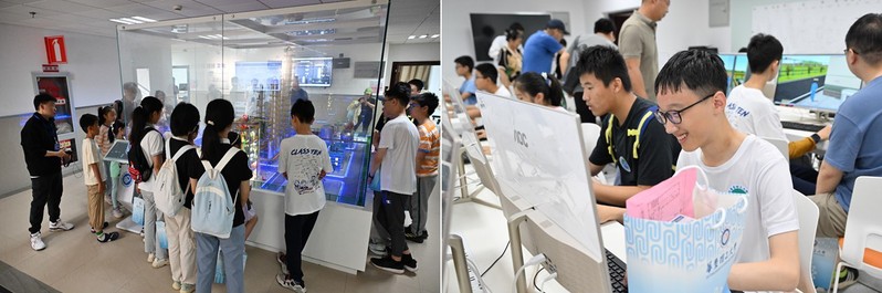 在实验中心雷明老师的带领下,参观者走进化工实验室,近距离观察了解精馏塔、流体流动中泵和管道等关键设备的结构和工作原理,结合酒精精馏、石油和天然气输送等例子,活动指导老师深入浅出地为学生们介绍了化工在生活中的实际意义。学生们对化工流程和装备充满了好奇,积极提问,现场氛围热烈。