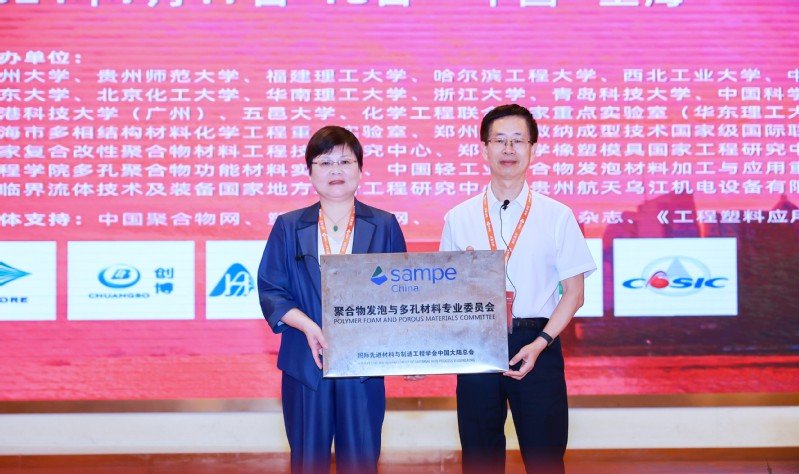 SAMPE全球总会理事长邱夷平教授代表SAMPE全球致辞并授牌2138cc太阳集团为SAMPE中国大陆总会聚合物发泡与多孔材料专业委员会第二届主任单位。