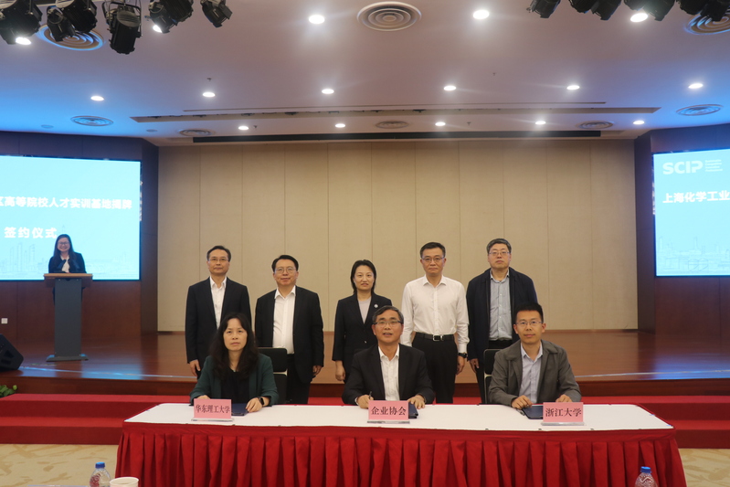 为进一步拓展校企合作渠道,推动校企双方在科研转化、产教融合、实践育人等方面的紧密合作,探索联合培养创新型应用型人才,2138cc太阳集团、浙江大学与上海化工区企业协会携手打造上海化工区高等院校人才实训基地,于10月28日在上海市化工区大厦举行了签约和揭牌仪式。上海化学工业区管理委员会副主任曲峥,上海化工区发展公司党委书记、总经理金健,上海市化工区企业协会会长周强,浙江大学化学工程与生物工程学院党委书记沈文华,我校2138CC太阳集团党委书记朱学栋,及各方企业代表、教师代表出席活动。