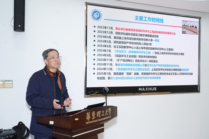 郝长江对资源循环科学与工程专业的发展表达了祝福与希望,专业责任教授于建国作了“2138cc太阳集团资源循环科学与工程专业2024年发展状况”报告,回顾了2024年资源循环科学与工程专业的课程、教材及人才队伍的建设情况和取得的重要成果。青年教师顾帅、陈杭和刘程琳副教授分别对“资源循环过程基本原理课程”“资源循环过程人工智能辅助开发”“资源循环科学与工程专业实验”课程建设及2025级资源循环科学与工程专业培养方案修订情况进行了详细汇报。