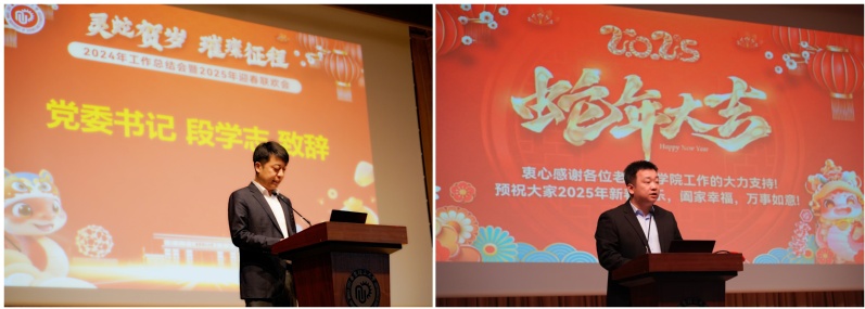 上午,全体教职工齐聚一堂,共同回顾过去一年的奋斗历程,展望新一年的发展蓝图,现场气氛热烈而温馨。学院党委书记段学志以“凝心聚力踏新程,携手奋进绘新篇”为主题发表致辞。他深情回顾了过去一年学院在各项工作中取得的成绩与进步,对全体教职工的辛勤付出表示衷心感谢。他强调,2025年是“十四五”收官和“十五五”谋划之年,在新的一年里,学院将继续坚持以习近平新时代中国特色社会主义思想为指导,贯彻落实学校第十二次党代会精神,紧紧围绕立德树人根本任务,不断推进学院各项事业的高质量发展。全体教师要继续秉持团结协作、锐意进取的精神,以更加饱满的热情和更加昂扬的斗志,迎接新的挑战,创造新的辉煌,为学院的高质量发展注入强大动力,携手书写属于化工人的新篇章。