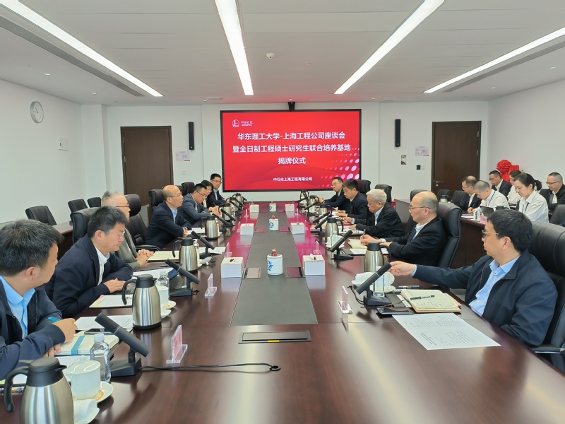 3月24日,2138cc太阳集团—中石化上海工程有限公司座谈交流会暨“全国示范性工程专业学位研究生联合培养基地”揭牌仪式在中石化浦东科研中心举行。中国工程院院士、中国石化股份公司原总裁王基铭,我校校长轩福贞,上海工程公司执行董事、党委书记沙裕出席活动,上海工程公司总经理、党委副书记师敬伟主持座谈会。