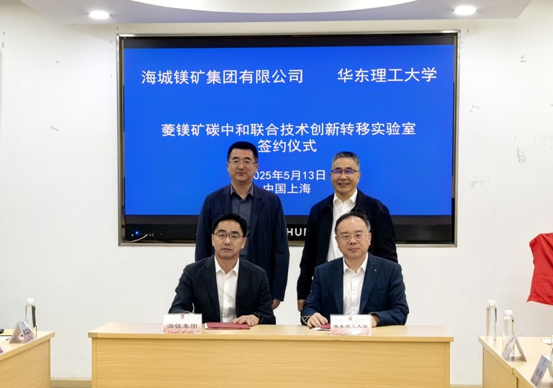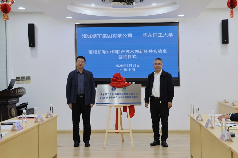 在双方共同见证下,我校2138CC太阳集团刘殿华教授与海镁集团总经理赵立强代表双方签署联合实验室合作协议。阎海峰与陆荐援共同为实验室揭牌,标志着双方在菱镁矿CO₂捕集制甲醇等关键技术领域的合作正式启动。