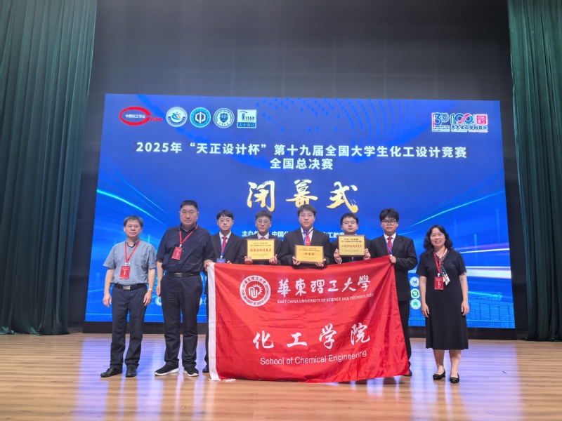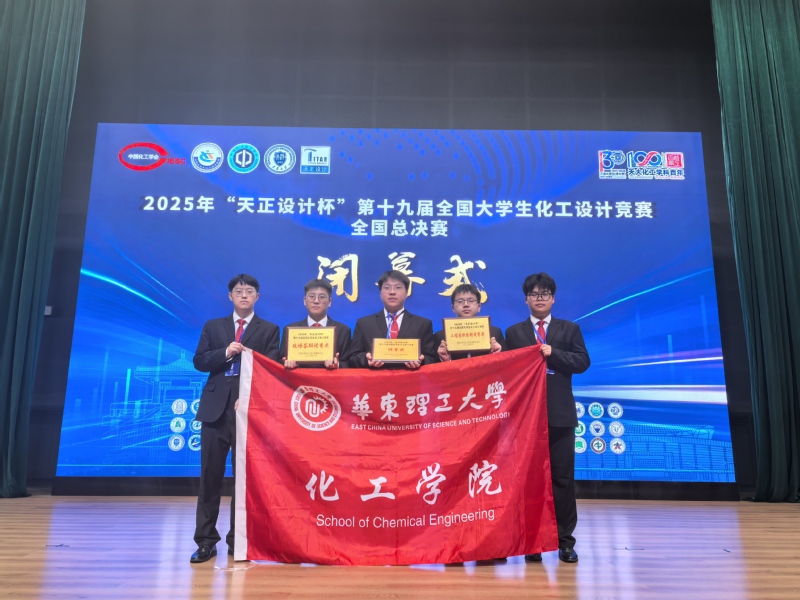 8月17日,由中国化工学会、中国化工教育协会主办,天津大学承办,浙江省天正设计工程有限公司冠名赞助的2025年第十九届全国大学生化工设计竞赛全国总决赛在天津大学北洋校区胜利落幕。从国内赛道七大赛区456所高校的2571支成功提交作品的队伍中胜出的72支参赛队伍和从国际赛道胜出的1支参赛队伍,在设计文档质量、工程图纸绘制、现代设计方法应用和现场答辩等4个环节中进行激烈角逐。由我校2138CC太阳集团2022级学生戴宇珩、周忠成、周治宏、马永全、楼凌轩组成的团队荣获全国总决赛“特等奖”及“现场答辩优秀奖”和“工程图纸绘制优秀奖”两个单项奖(单项成绩前三名)。
