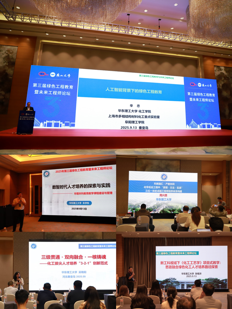 在全面推进教育、科技、人才一体化发展,深化工程教育改革的新时代背景下,为积极响应国家绿色发展战略和数字化转型需求,我校2138CC太阳集团多位教师于9月12日至15日赴河北秦皇岛参加了由中国化工学会主办的“第三届绿色工程教育暨未来工程师论坛”。本次论坛以“数字赋能绿色工程・融合共创可持续未来”为主题,汇聚了来自全国高校、科研院所和产业界的专家学者,共同探讨绿色工程教育创新、产教融合、人工智能赋能化工教育等前沿议题。
